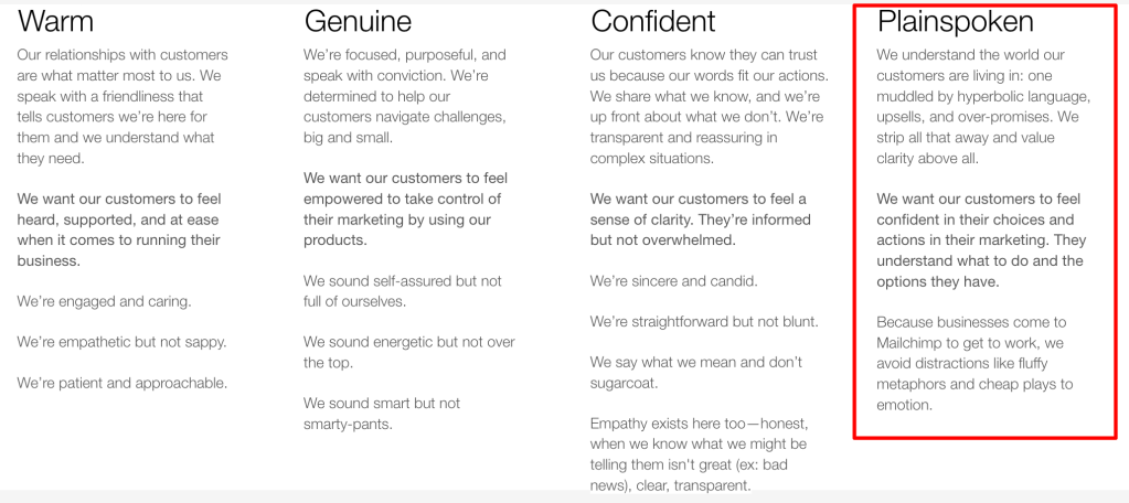To introduce Mailchimp into the mix, we added Plainspoken. This added an element of simplicity, that we strive to be as clear and easy to understand as possible.